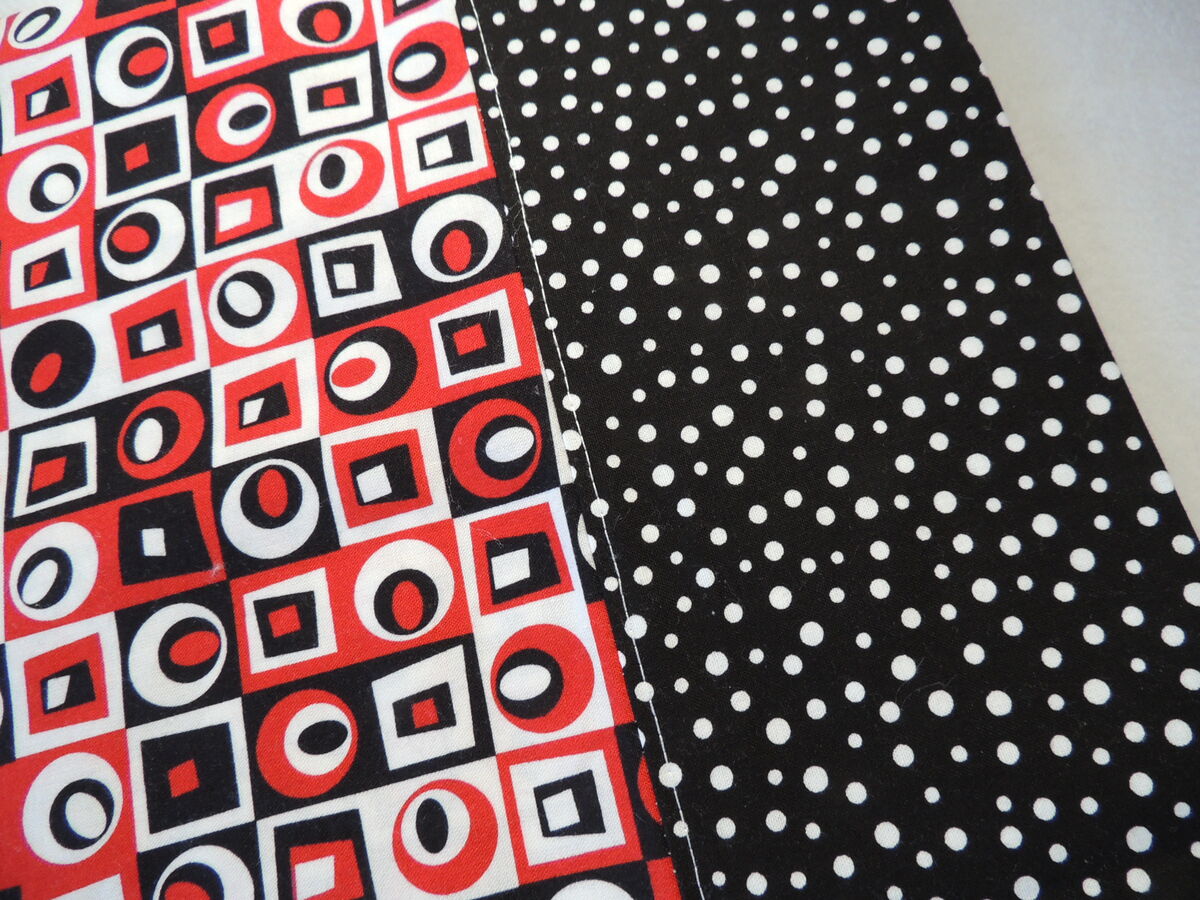 Fun geometric print in red/black/white with dot cuff. Fine 100% cotton quilters fabric.