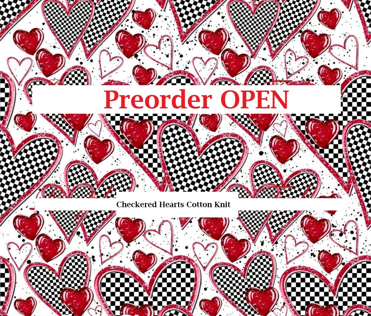 Fun print for Valentine's Day, custom art printed on cotton lycra knit for us in the USA.